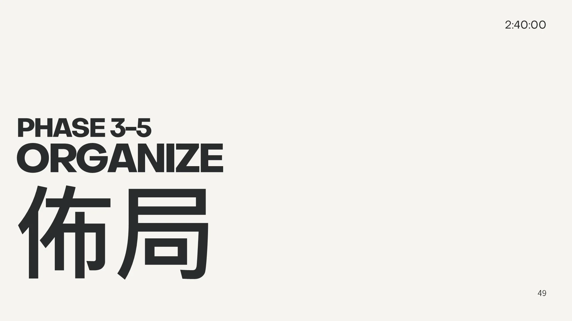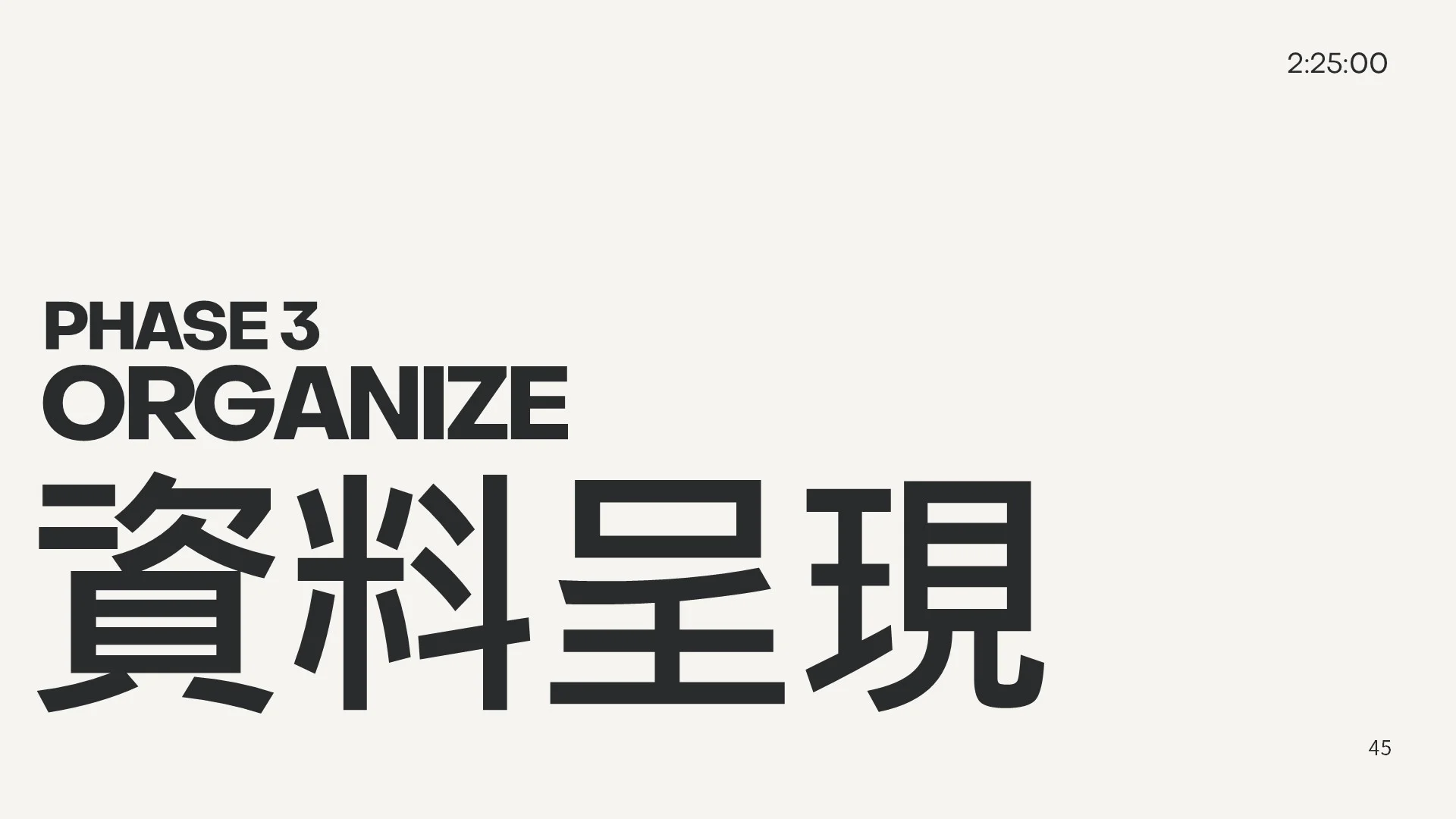 PHASE 3 ORGANIZE (2:25:00)